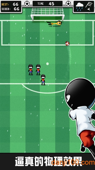 6、游戏的物理效果很逼真,多加练习还可以打出非常完美的弧线任意球:真实的物理引擎让每次射门都充满可能性;