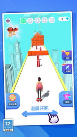 1、玩家需要灵活操控角色完成各种关卡挑战,在跑酷过程中不断收集高跟鞋,让角色的高跟鞋变得更高,从而解锁更多特殊能力。随着高跟鞋高度的增加,角色的移动速度和跳跃能力也会得到显著提升。
