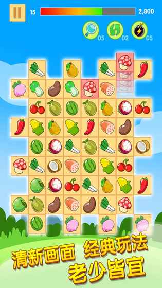 4.核心玩法要求玩家在有限时间内快速找出相同水果进行配对消除,考验观察力和反应速度,紧张刺激又充满乐趣。