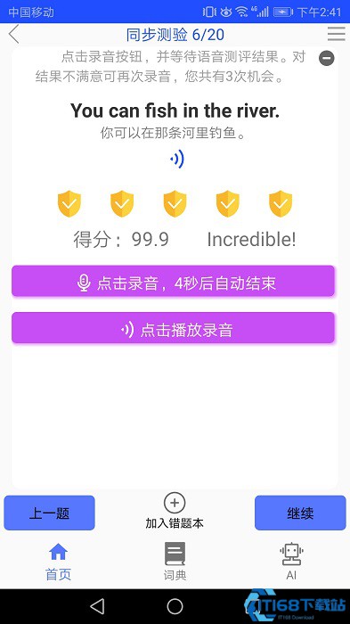 3)提供智能AI英语口语陪练,增加学习的乐趣。虚拟外教支持自由对话练习,内置100+生活场景话题,对话内容实时生成且支持难度调节。