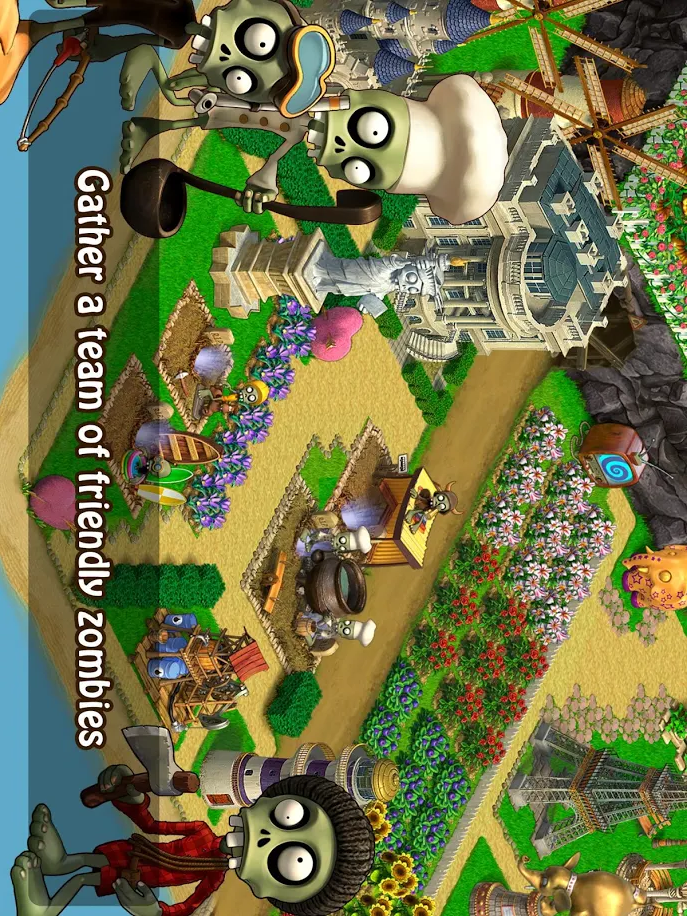 游戏采用精致可爱的画风,每个僵尸角色都有独特的外形和个性。玩法融合了多种元素,自由度极高,玩家可以随心所欲地规划城市发展。除了开垦荒地,还能根据地形特点设计专属农场。