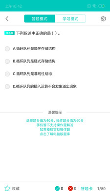 【练题模式】提供随机练习、顺序练习、模拟考试三种模式,满足不同阶段学习需求。随机练习适合碎片化学习,顺序练习帮助系统掌握知识点,模拟考试则能全面检测学习效果。