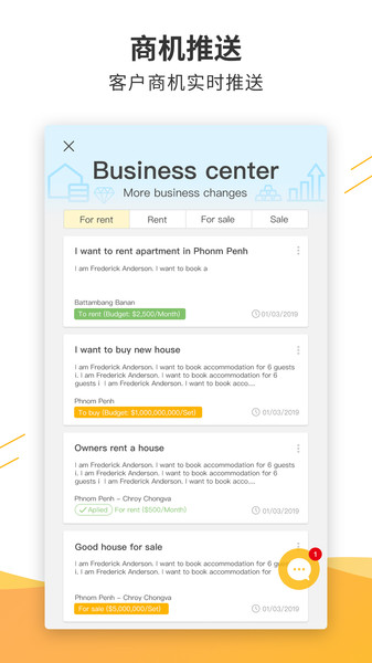 【实时推送】系统能够即时捕捉客户在平台上的浏览、收藏等行为,并将这些动态实时推送给经纪人。通过掌握客户的实时需求变化,经纪人可以更有针对性地推荐房源,大幅提升带看成功率和成交转化率,让销售过程更加顺畅高效。