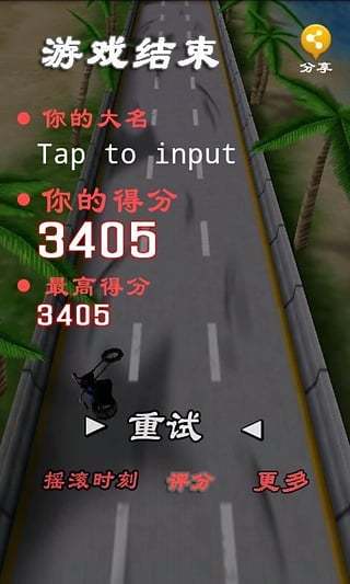 4、但是你不能撞到你前面的车!直观的游戏规则:倾斜手机控制摩托车行驶方向,点击屏幕加。游戏采用真实的碰撞物理系统,与其他车辆或障碍物相撞会导致速度大幅下降甚至翻车事故。玩家需要掌握精准的超车时机和路线选择技巧。游戏还设置了完善的AI交通系统,其他车辆会根据交通规则和玩家行为做出智能反应。