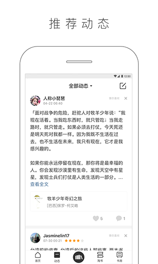 - 以书会友:这里聚集了大量偏爱纸质阅读的书友,你的书房就是个人品味的展示窗——书单相似,兴趣相投,轻松找到灵魂书友!