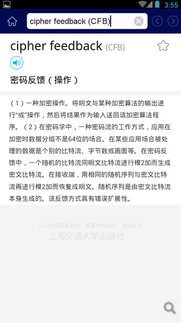 (1)权威正版:本应用由上海交通大学出版社官方授权发行,内容经过行业专家严格审核,确保每个词条解释的准确性和权威性。