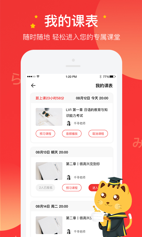 友达日语APP作为专业的在线日语学习平台,为学员提供全方位的日语学习服务。平台采用科学的教学体系,包含课前预习教材、配套音频资料、实时在线课堂以及课后作业复习等完整学习环节。学员可以根据个人学习进度和偏好自由选择授课老师,平台还创新性地设置了课后师生互评系统,帮助持续优化教学质量。此外,APP还提供学习进度跟踪、错题记录等实用功能,让学习过程更加高效有序。