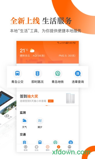 1.扩展了本地"生活"服务板块,新增公交查询、天气预警等实用工具,让市民生活更加便利;