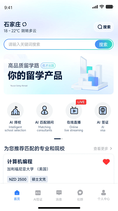 嗨优才app是由北京银蕨教育科技集团倾力打造的专业教育服务平台,专注于为有出国留学需求的用户提供全方位支持。作为一款整合全球优质教育资源的智能应用,嗨优才不仅汇聚了美国、英国、加拿大等主流留学国家的院校信息,更通过创新的互联网技术搭建起学生与海外院校的直接沟通桥梁。平台每日更新最新留学资讯、院校动态和申请攻略,确保用户获取第一手权威信息。无论是留学规划、院校选择还是申请指导,嗨优才都能提供专业可靠的一站式解决方案,助力每位学子实现留学梦想。