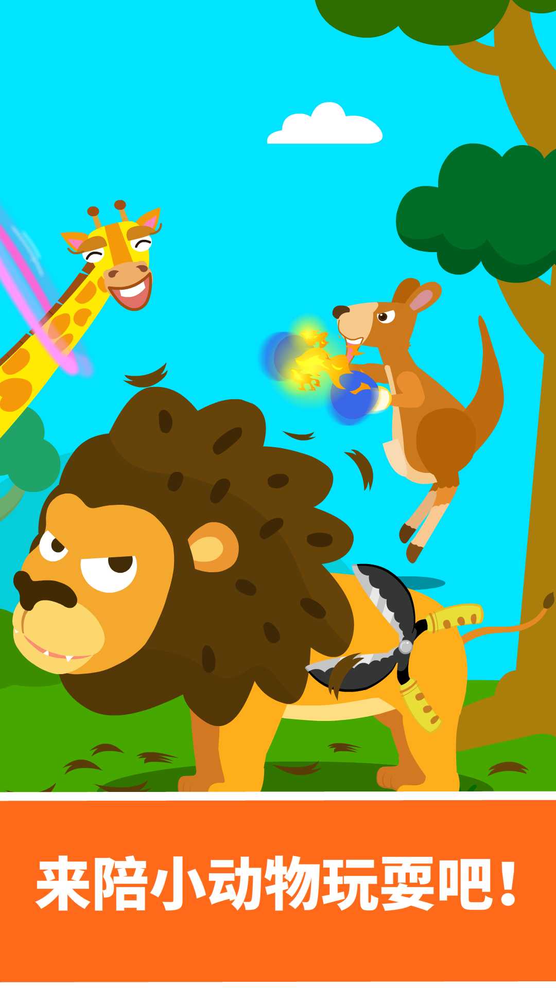 欢迎小朋友们来到这个神奇的动物王国!在这里,你将遇见9位性格迥异的动物朋友:调皮的小猴子总是蹦蹦跳跳,仿佛有用不完的活力;优雅的长颈鹿伸着长长的脖子,就像一座移动的瞭望塔;威武的大象迈着稳健的步伐,每一步都充满力量;还有可爱的袋鼠宝宝,它们蹦蹦跳跳的样子简直萌化人心。游戏采用高清3D建模技术,完美还原了每种动物的真实形态和习性。通过简单的触屏操作,孩子们可以近距离观察这些动物,了解它们的生活习性。每次点击动物都会触发不同的互动效果,比如听到动物的真实叫声,或是看到它们做出有趣的动作。这些精心设计的互动环节不仅能带来欢乐,更能激发孩子们探索自然的好奇心。