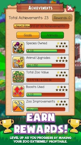 放置动物园大亨是一款轻松有趣的模拟经营游戏,玩家将扮演一位动物园管理者,从零开始打造属于自己的梦幻动物园。游戏采用简单易上手的放置玩法,玩家需要不断收集和饲养各种可爱的动物,同时建设娱乐设施和装饰园区来吸引游客。随着动物园规模的扩大,你可以解锁更多稀有动物如熊猫、狮子等,并通过升级动物栖息地来提高它们的出生率。游戏还支持离线收益,即使关闭游戏也能持续获得收入,让你随时随地都能享受经营动物园的乐趣!