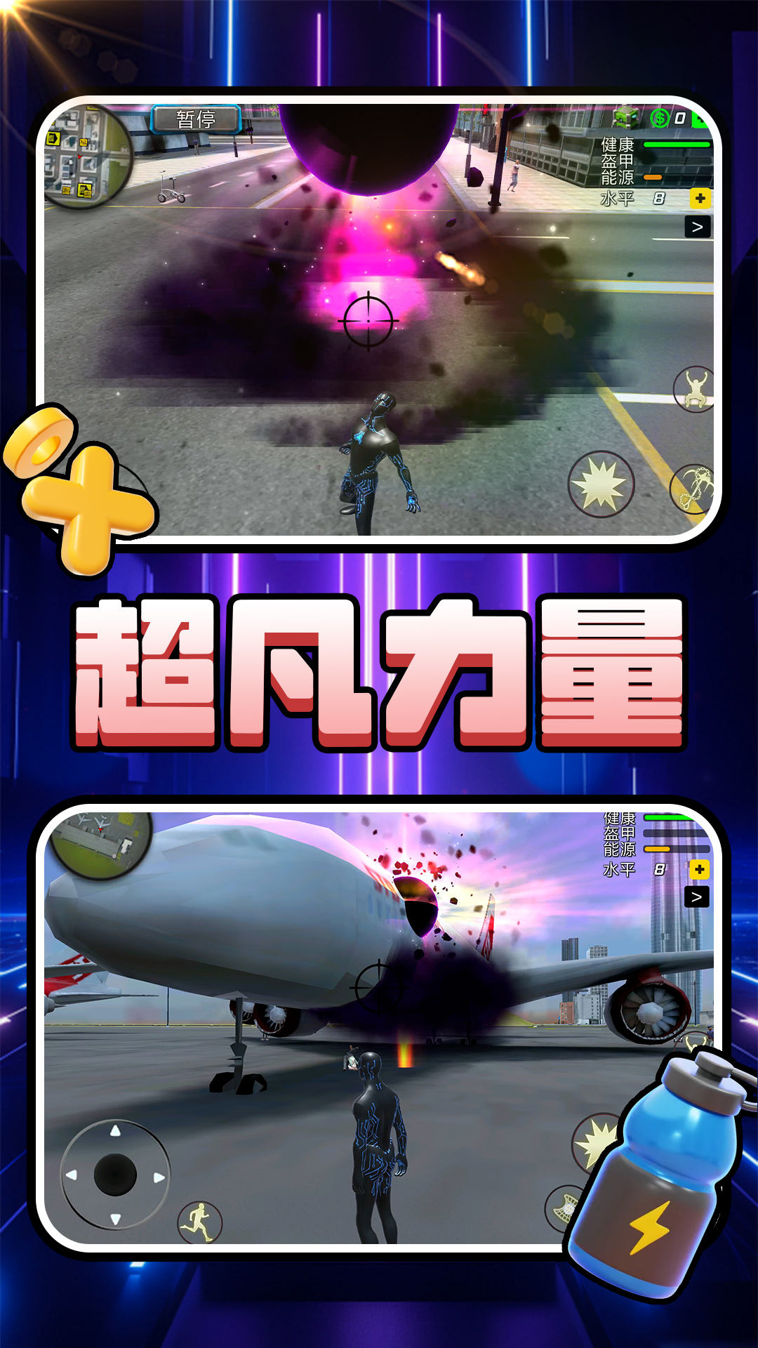 游戏中的战斗系统经过精心设计,每一招每一式都充满力量感,玩家可以感受到超级英雄的非凡实力。通过连击、闪避和格挡等操作,玩家可以打出华丽的连招,击败敌人。不同的英雄拥有独特的技能树,玩家可以根据自己的喜好自由搭配技能,打造个性化的战斗风格。此外,游戏还加入了环境互动元素,玩家可以利用场景中的道具或地形对敌人造成额外伤害,让战斗更加多变有趣。