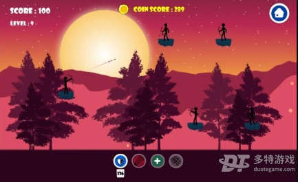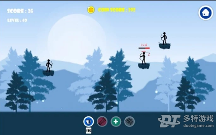 游戏中的特殊能力系统是一大亮点,玩家可以获得盾牌防御、生命恢复、多重射击和箭雨四种强力技能。通过击败敌人可以获得金币奖励,这些金币可以在游戏内商店购买各种道具和升级装备。道具系统设计巧妙,合理使用可以大大提升通关效率。游戏还设有成就系统,记录玩家的最高关卡进度和击杀记录,激励玩家不断挑战自我。多样化的游戏机制让每次游玩都能获得新鲜体验。