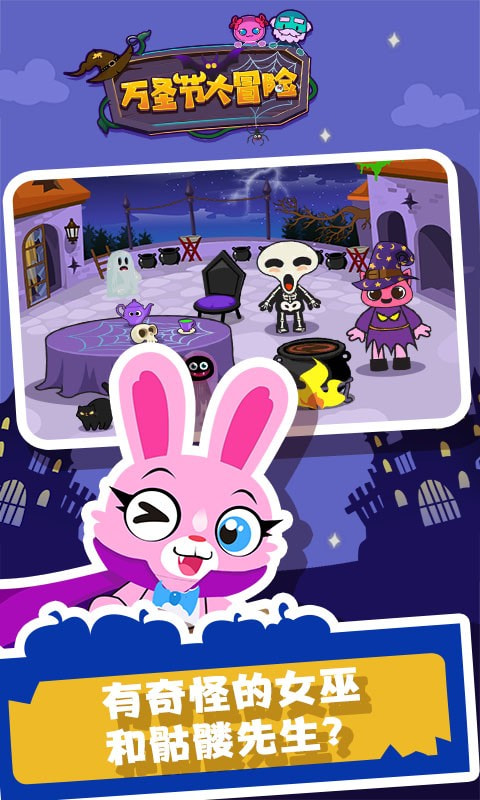 2. 游戏采用欧美卡通风格,画面色彩明快,角色造型呆萌可爱。场景设计充满万圣节特色,从南瓜灯到幽灵城堡,每个细节都经过精心打磨。流畅的动画效果和轻快的背景音乐,为孩子们营造出欢乐的游戏氛围。