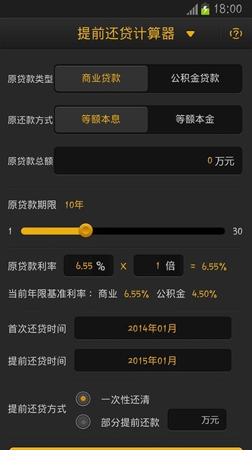 金额输入支持滑动条快速调整,贷款期限可选择1-30年,特别设置"退休年龄提醒"功能避免月供超期