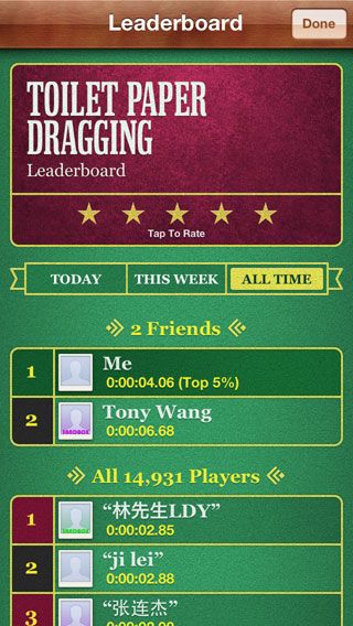 游戏的核心玩法简单而富有挑战性:玩家需要用手指在屏幕上快速滑动,模拟拉出厕纸的动作。滑动速度越快,得分就越高。游戏设置了多种道具和特殊效果,比如加速道具可以让你的拉纸速度瞬间提升,而障碍物则会增加挑战难度。背景音乐轻快活泼,与卡通风格的场景完美融合,营造出轻松愉快的游戏氛围。特别值得一提的是,游戏还加入了物理引擎,让厕纸的飘动效果更加真实自然。你可以随时查看自己的历史最佳成绩,并与好友分享游戏中的精彩瞬间。