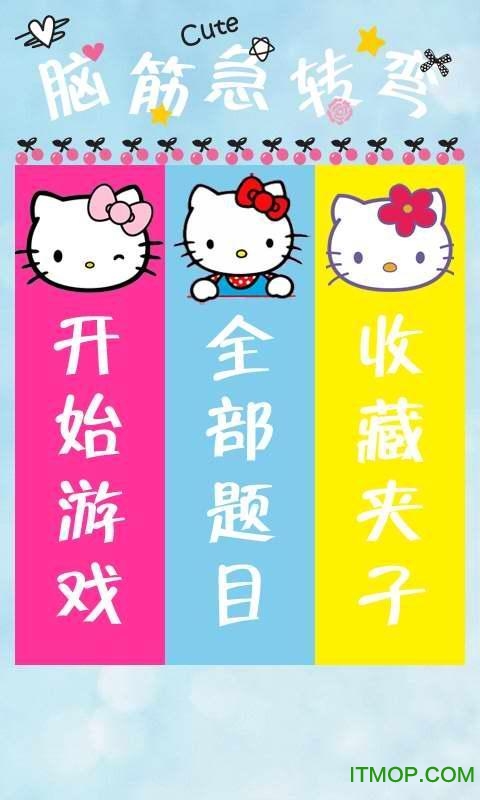 可爱脑筋急转弯app是一款以Hello Kitty为主角的益智休闲游戏,采用清新可爱的卡通风格设计,界面色彩明亮活泼。这款应用汇集了数百个趣味十足的脑筋急转弯题目,不仅能带给用户欢乐的游戏体验,还能锻炼逻辑思维和反应能力。无论是小朋友还是大朋友,都能在这款应用中收获知识与乐趣。游戏操作简单直观,支持离线游玩,随时随地都能开启脑力挑战。快来下载体验这款寓教于乐的益智游戏吧!