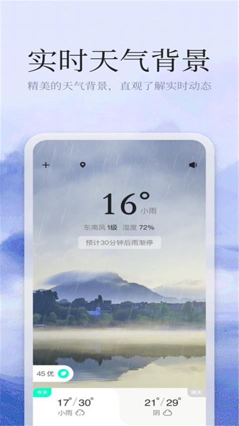 创新的动态天气背景功能,会根据实时天气状况显示相应的动态效果,如下雨、下雪、晴天等,让您直观感受当前天气状况,体验更加真实。