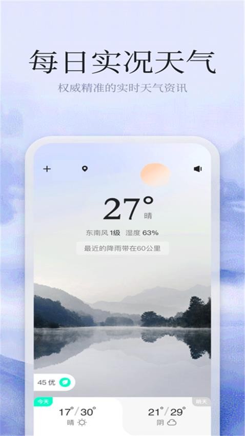 采用极简主义设计风格,重要天气信息一目了然,同时支持深度数据查看,满足不同用户的需求,操作简单直观,老人小孩都能轻松使用。