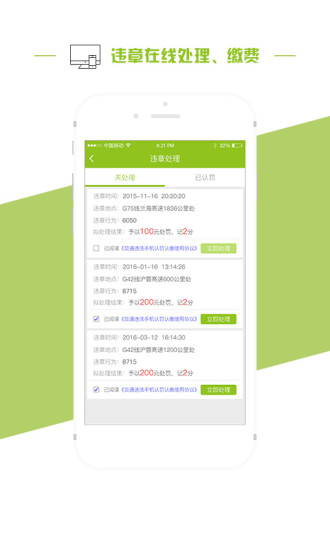 3.在线认罚认缴处理交通违法服务,足不出户即可完成罚款缴纳;