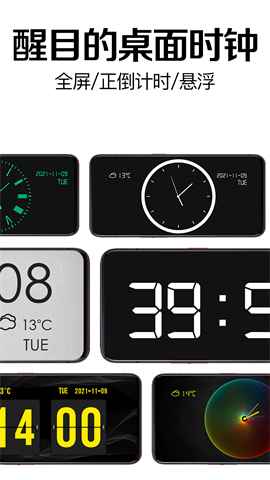 可作为手机屏保时间或桌面悬浮时钟小组件,让你随时查看时间,既美观又实用。无需解锁手机就能查看时间,让您不错过每一个重要时刻。