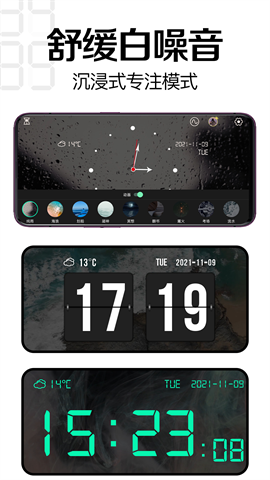 全屏时钟、酷炫皮肤、计时器和舒缓白噪音,让你享受高效的时间管理与美好时光。一站式解决您的时间管理需求,让生活更有条理。
