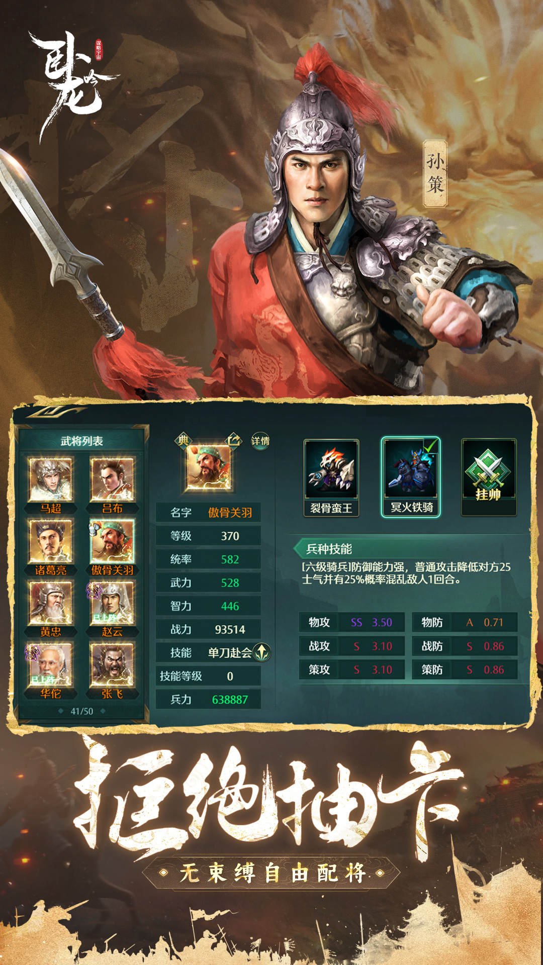 《卧龙吟-手机版》是一款以三国时期为背景的经典战争策略游戏,完美还原了那段群雄并起、烽火连天的历史。游戏采用轻松休闲的玩法设计,无需肝氪即可体验完整内容,所有武将均可随进度解锁,每天只需15分钟即可完成日常任务,让玩家在快节奏的生活中也能享受策略对战的乐趣。无论是历史名将的收集培养,还是兵种相克的战术搭配,都将带给主公们运筹帷幄、决胜千里的真实体验。