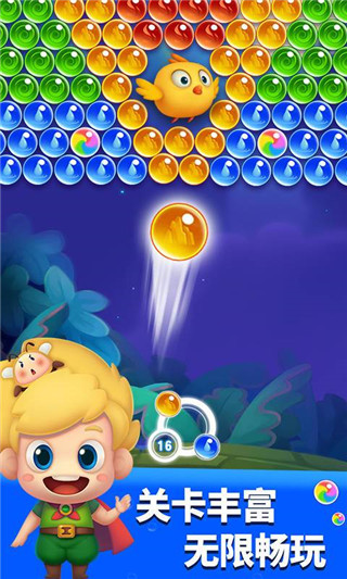 3、作为一款完全免费的泡泡射击游戏,无需联网即可畅玩,支持随时存档和继续游戏。简洁的UI设计和直观的操作方式让各个年龄段的玩家都能轻松上手。