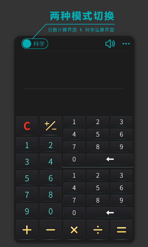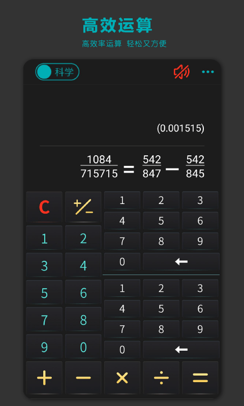 分数高级计算器是一款功能强大且操作简便的计算工具,界面设计简洁直观,能够满足不同场景下的计算需求。它支持科学计算器与普通计算器模式的自由切换,并内置多种实用功能,让复杂的数学运算变得轻松高效。无论是学生、工程师还是财务人员,都能从中获得便捷的计算体验。软件还提供语音播报、历史记录等贴心功能,为用户带来更加智能化的使用感受。欢迎有需要的用户下载体验!