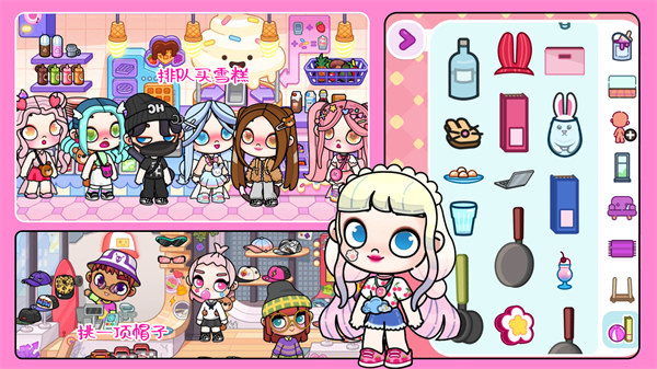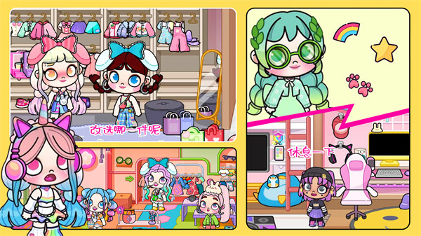 游戏中的场景设计极具创意,每个场景都经过精心打造,拥有独特的主题风格和互动元素。比如百老汇舞台场景中,孩子们可以为角色选择华丽的演出服装,在聚光灯下进行虚拟表演;海底城堡场景则充满了海洋生物和珊瑚礁等元素,让孩子们仿佛置身于童话般的海底世界。这些场景不仅视觉效果出众,还融入了简单的互动玩法,比如点击场景中的物品会触发有趣的动画效果。通过在不同场景中探索和装扮,孩子们可以拓展视野,培养对多元文化的认知,同时激发他们的艺术创造力。