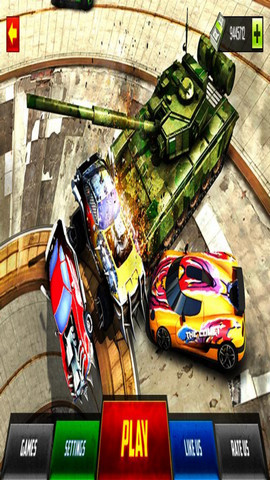 2、但是这里你是强大的坦克,而你的对手是弱不禁风的小汽车。游戏设计了多种难度级别的对手,从普通轿车到装甲车,挑战性逐步提升。