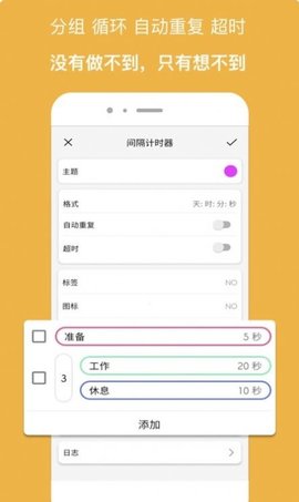 5.丰富的自定义选项:用户可以根据个人喜好和需求,自定义音效、提醒方式等,提升使用体验。此外,软件还支持自定义界面主题,用户可以根据自己的喜好调整界面风格,让计时器更加个性化。