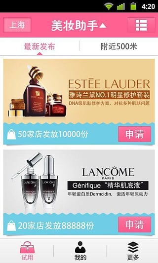 1、品牌最新化妆品试用,美丽试出来,总有适合你。我们与超过200个国际一线美妆品牌建立战略合作,每周更新上百款新品试用,涵盖护肤、彩妆、香水等全品类。专业的美妆顾问团队会根据您的肤质、年龄和需求,智能推荐最适合的产品,让您足不出户就能体验专柜级的服务。