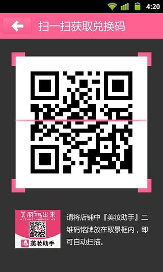 3、点击详情进入试用券详情,点击"立即使用",漂漂美妆助手会运行二维码扫描,请对扫描放置在店铺中的漂漂二维码,即可获取领取码;我们的扫码系统经过特别优化,识别速度快至0.3秒,即使在网络不佳的环境下也能顺畅使用。