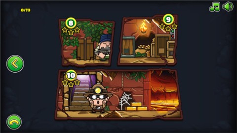 2、玩法独特而富有趣味:采用直观的触屏操作方式,玩家只需轻点屏幕即可控制鲍勃行动。游戏强调观察与策略,玩家需要仔细观察环境,选择最佳路径,巧妙利用各种道具和机关。面对不同敌人时,需要采取不同应对方式,如击晕木乃伊、躲避摄像头等。