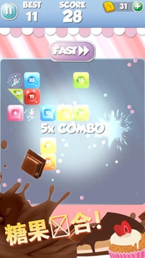 3、创新的瞄准消除机制,玩家需要精确计算小球弹射轨迹,让糖果球准确命中目标方块,考验玩家的空间判断能力。