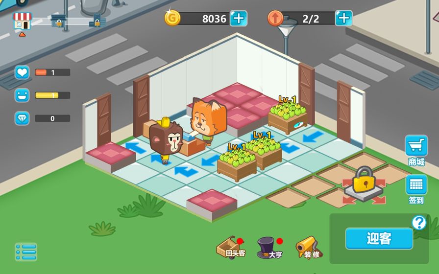 1、游戏中所有的顾客都会按照指定的路线进行购物,你可以通过优化货架布局和商品陈列来引导客流,提高销售效率。2、随着业务发展,你可以招募更多可爱的动物员工为顾客服务,他们不仅能帮助顾客快速找到所需商品,还能提供贴心的购物建议。3、通过不断积累资金,你可以逐步扩大店铺规模,增加更多货架和商品种类,打造属于你的连锁超市王国。