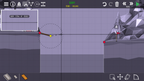 3、规定的时间内进行桥梁的建设,玩法也是无比简单,操作极为方便。游戏提供便捷的建造工具和实时物理模拟,玩家可以快速调整设计方案,通过拖拽、旋转等直观操作完成建造,体验流畅的工程创作过程。