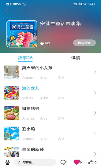 1、一款适合亲子早教的睡前故事软件,包含丰富的童话故事、百科故事、国学故事等;特别开发了"睡前10分钟"系列,精选短小精悍的温馨故事,配合轻柔的背景音乐,帮助孩子快速入眠。