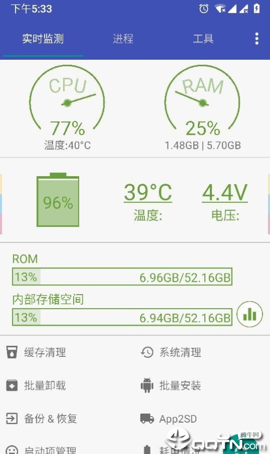 1.监控状态(CPU内存电池):实时显示系统资源占用情况,帮助用户及时发现性能瓶颈。
