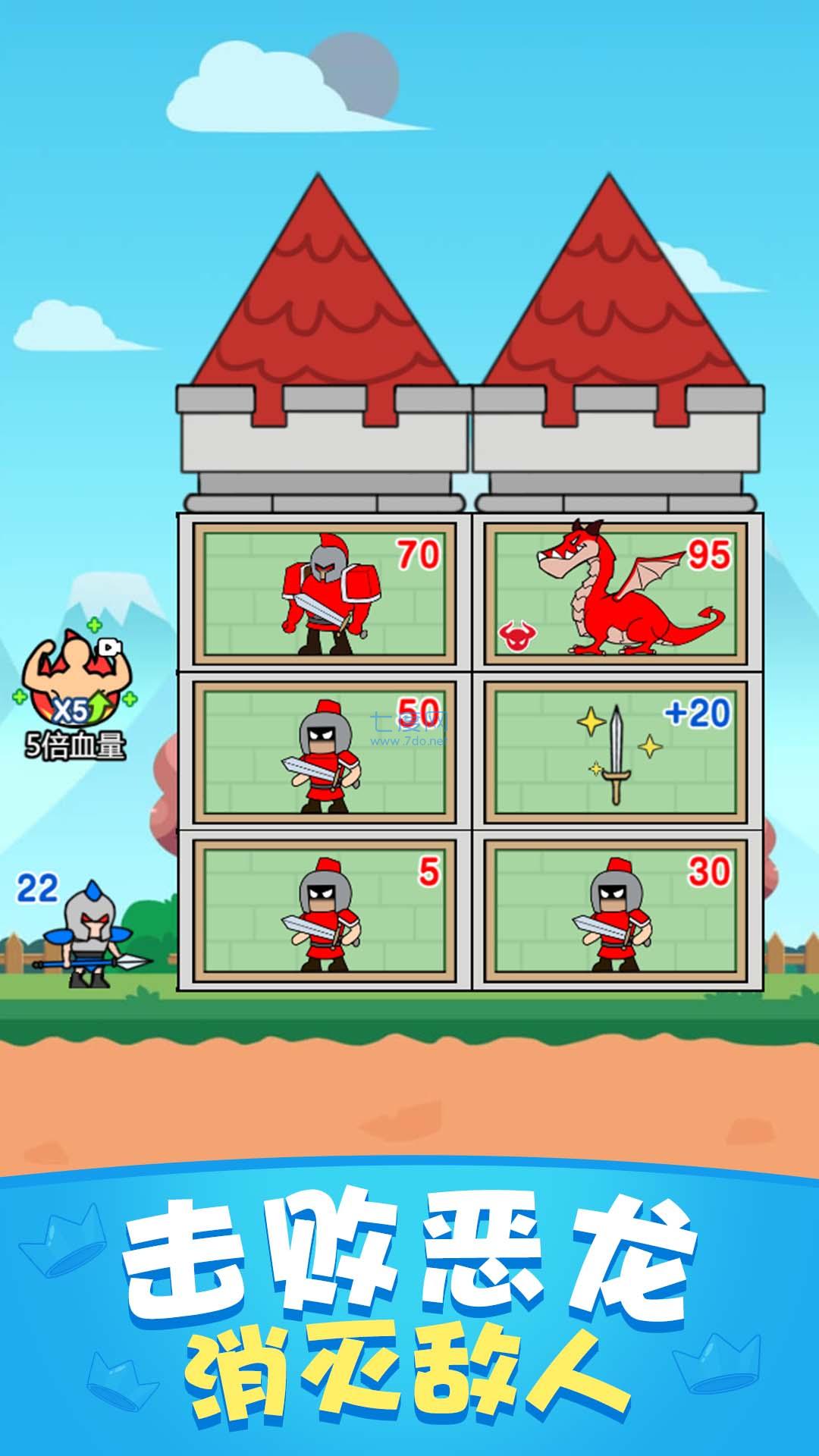 1、游戏设定了一个引人入胜的剧情:公主被困在塔顶,玩家需要扮演勇敢的士兵,一路斩杀守卫才能完成救援任务。这个经典的故事框架让游戏更具代入感。