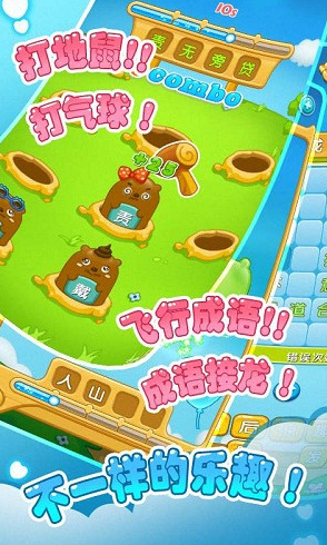 4、成语打气球:气球会随机显示成语片段,玩家需要精准击破包含正确字词的气球;