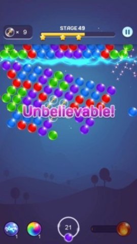 1、游戏过程中,屏幕上的泡泡会不断增加,颜色也会越来越丰富,为玩家带来持续的挑战;