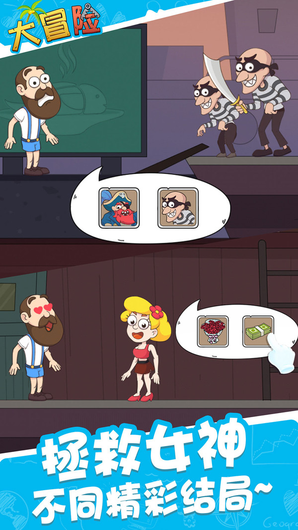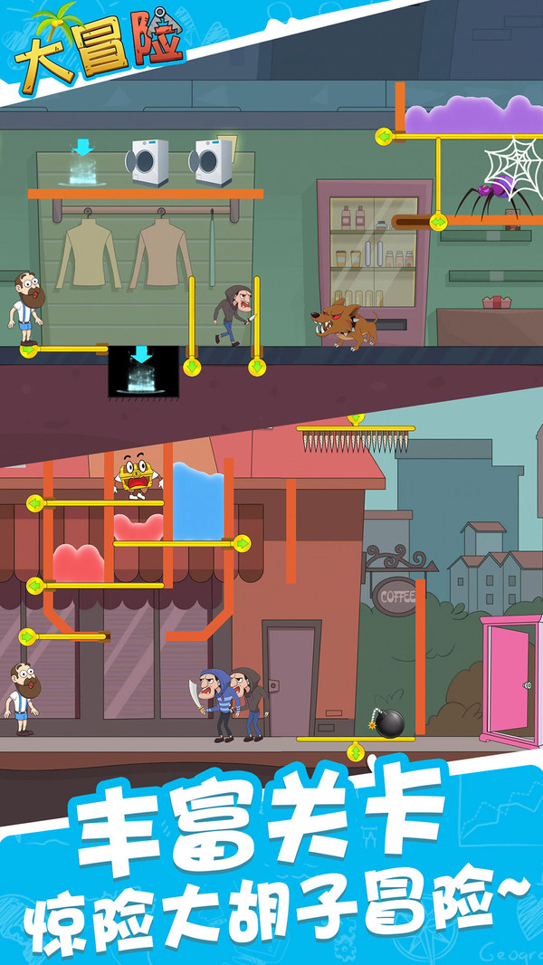 《大冒险》是一款充满欢乐与挑战的休闲解谜游戏,以其独特的魔性关卡设计和爆笑音效为玩家带来无限乐趣。游戏采用美漫式卡通风格,画面色彩鲜明,角色造型夸张可爱。玩家将扮演机智的冒险者,在精心设计的关卡中运用各种道具和机关,帮助女主角逃离困境。游戏包含多个不同结局,每个选择都可能影响故事走向,大大增加了可玩性。无论是解谜爱好者还是休闲玩家,都能在这款游戏中找到属于自己的乐趣,体验烧脑又解压的冒险之旅。