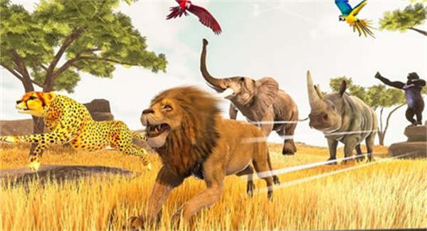 《热带草原动物赛跑3D》是一款充满野性魅力的3D竞速冒险游戏,将玩家带入广袤无垠的非洲大草原。在这里,你不仅可以操控狮子、猎豹等草原霸主展开速度对决,还能解锁霸王龙、三角龙等史前巨兽参与跨时空竞赛。游戏采用先进的3D渲染技术,完美还原动物肌肉线条与动态光影效果,搭配实时变化的天气系统,让每场赛跑都如同置身Discovery纪录片现场。独创的成长系统允许玩家通过比赛积累进化点数,不仅能解锁稀有皮肤,还能培养出专属的变异品种,体验从幼崽到草原之王的完整成长历程。