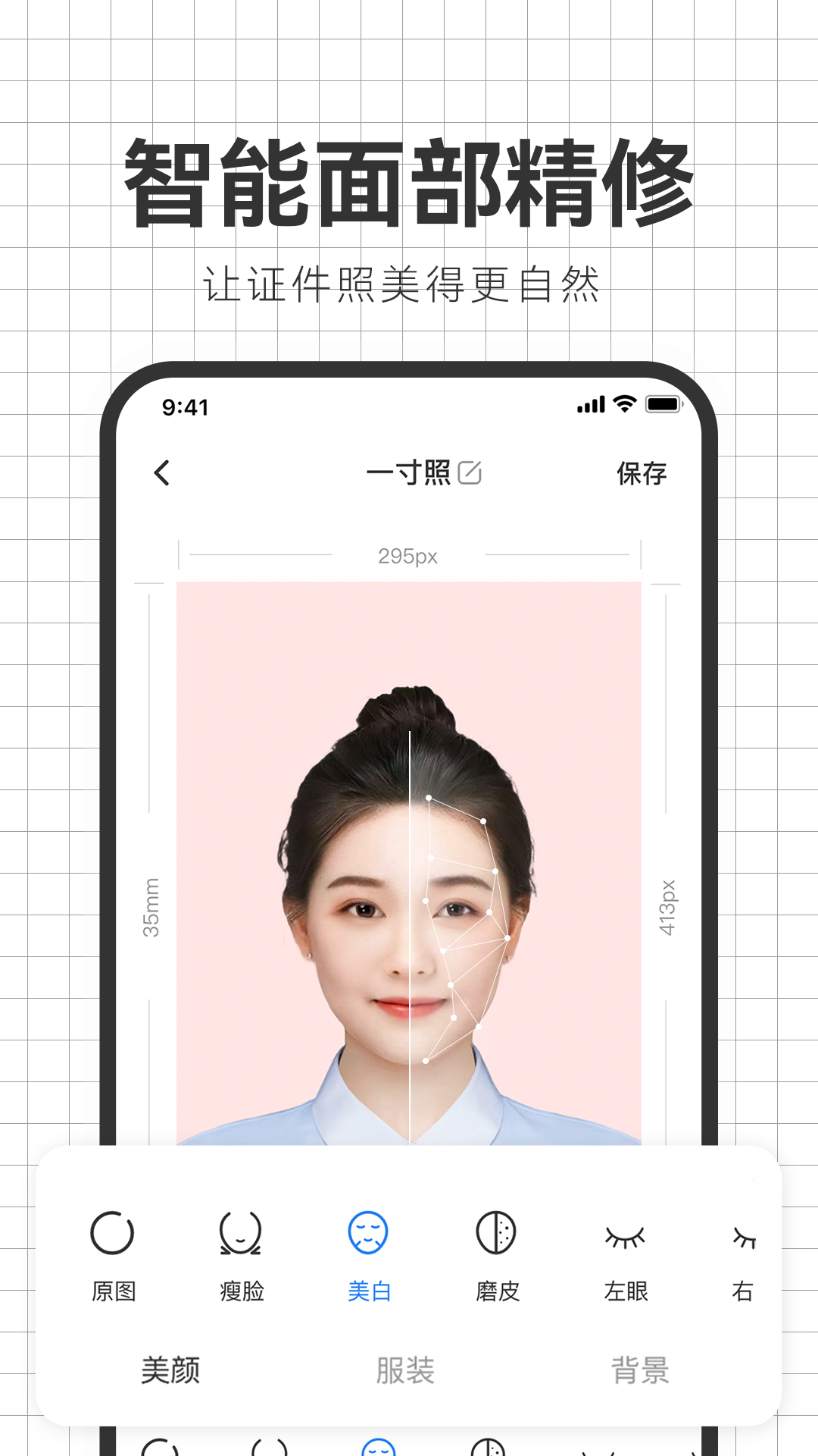 Al智能研究算法提供瘦脸、美白、磨皮、左右眼精修、、嘴巴微调等美颜功能。一键还原更美且真实的你,打造自然、高级感脸庞,告别证照不美的时代。美颜效果经过专业调校,既不会过度失真,又能有效改善肤质问题。支持手动微调功能,可根据个人需求精细调整每个参数,让您的证件照既美观又保持个人特色。