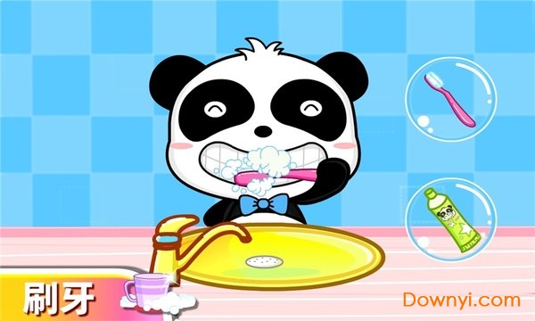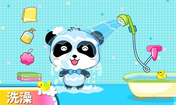 洗澡环节设计了丰富的互动内容,包括涂抹沐浴露、搓洗身体、冲洗泡沫等完整流程。小朋友可以帮小动物选择喜欢的沐浴用品,体验洗澡的乐趣。游戏还特别强调了耳朵、脚趾等容易忽略部位的清洁,培养孩子全面的卫生意识。