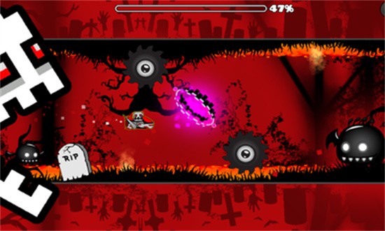 2、游戏的核心玩法是操控骷髅方块在由各种几何体构成的奇幻世界中前进,每个关卡都经过精心设计,呈现出独特的几何美学;