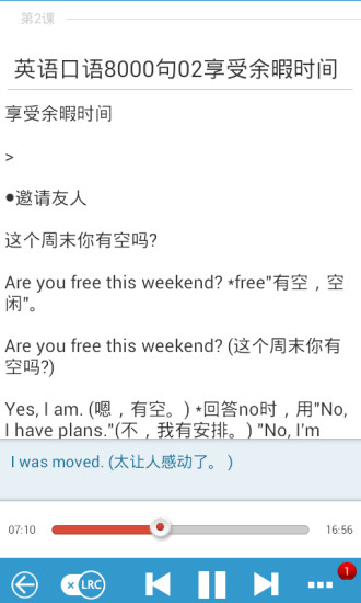 4、口语跟读:采用智能语音识别技术,实现逐句跟读训练,即时反馈发音准确度,通过评分系统帮助用户持续改进口语表达;