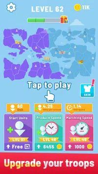 3、有趣的玩法。在游戏开始时,您可以获得小单位,通过占领扩大您的部队,选择进攻目标,聚集部队的力量以占领更多领土,最终获胜!游戏还加入了天气系统和地形因素,让战斗更具策略性。